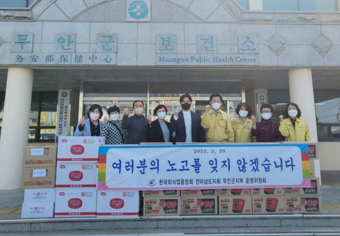 [È£³²´º½º¶óÀÎ = ¼ÀºÈ« ±âÀÚ] ¹«¾È±ºÀº ÃÖ±Ù (»ç)Çѱ¹¿Ü½Ä¾÷ ¹«¾È±ºÁöºÎ(ÁöºÎÀå ±èÇü½Ä)¿¡¼ º¸°Ç¼Ò¸¦ ¹æ¹®ÇØ ¿¬ÀÏ Äڷγª19 ¾÷¹«¿¡ ÃÖ¼±À» ´ÙÇϰí ÀÖ´Â °øÁ÷ÀÚµéÀ» À§¹®Çϰí ÈÄ¿ø¹°Ç°À» Àü´ÞÇß´Ù°í ¹àÇû´Ù.