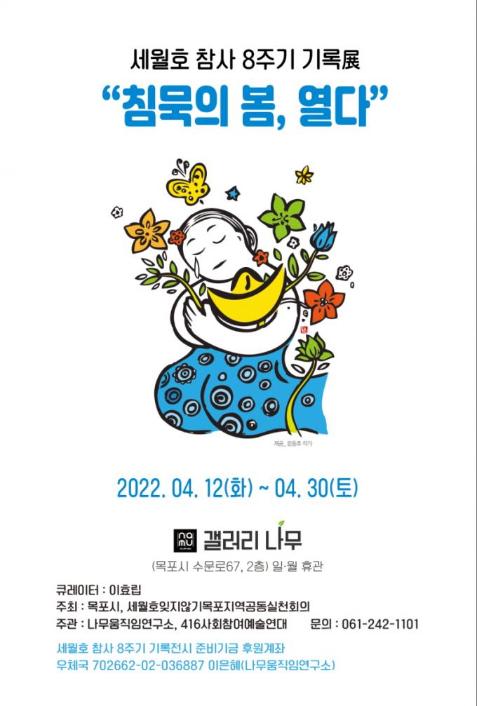 ¿À´Â 4¿ù 16ÀÏ, ¿ÀÀü 10½Ã¿¡ ¸ñÆ÷½ÅÇ׿¡¼ ¡®¼¼¿ùÈ£ Âü»ç 8Áֱ⠱â¾ï½Ä¡¯À» °®´Â´Ù. ¸Å³â ¼¼¿ùÈ£ ¼±Ã¼ ¾Õ¿¡¼ ¿¸®´Â ±â¾ï½ÄÀº Âü»çÀÇ Áø»ó±Ô¸í°ú Ã¥ÀÓÀÚ Ã³¹ú¿¡ ´ëÇÑ ÀÇÁö¸¦ ´ÙÁö°í, ±íÀº ½½ÇÄÀ» °ÞÀº Èñ»ýÀÚ¸¦ À§·ÎÇÏ¸ç ¾ÈÀüÇÑ »çȸ¸¦ ¸¸µé°Ú´Ù´Â ´ÙÁüÀ» ÇÏ´Â Çà»ç·Î À̹ø 8Áֱ⠱â¾ï½ÄÀº ±â¾ï»ç, Ã߸ðÀ½¾Ç°ø¿¬, ½Ã³¶¼Û, ¸öÁþ ÆÛÆ÷¸Õ½º, ¼±¾ð¹® ³¶µ¶, ¼¼¿ùÈ£ Ä¡À¯ÀÇ Ãã ¼ø¼·Î ÁøÇàµÉ ¿¹Á¤ÀÌ´Ù.