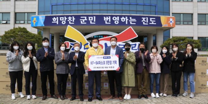 [È£³²´º½º¶óÀÎ = ¼ÀºÈ« ±âÀÚ] Áøµµ±ºÀº ÃÖ±Ù °í±º¸é ¿ÀÀϽø®°¡ °íÇâÀÎ ¢ß¾ÖÄڵ帲 ÀÌÁذü ´ëÇ¥°¡ Áö¿ª ¼Ò¿Ü°èÃþ¿¡ Àü´ÞÇØ ´Þ¶ó¸ç, KF94 ¸¶½ºÅ© 5¸¸ÀåÀ» ±âŹÇß´Ù.