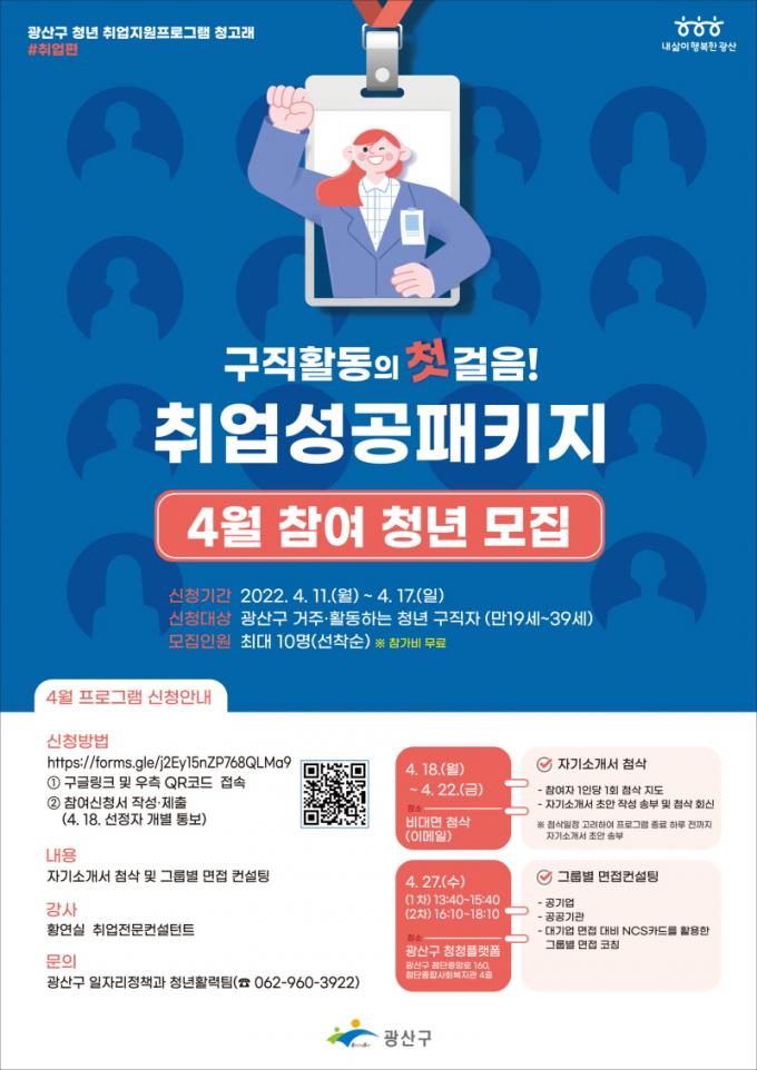±¤»ê±¸¿¡ °ÅÁÖÇϰí Àְųª ±¤»ê±¸¿¡¼ Ȱµ¿ÇÏ´Â ¸¸ 19~39¼¼ ¹ÌÃë¾÷ û³âÀÌ ´ë»óÀ¸·Î, ÀÌ´ÞºÎÅÍ 11¿ù±îÁö ¸Å¿ù 10¸íÀ» ¼±Âø¼øÀ¸·Î ¸ðÁýÇØ ¿Â¡¤¿ÀÇÁ¶óÀÎÀ¸·Î ÁøÇàÇÒ ¿¹Á¤ÀÌ´Ù.