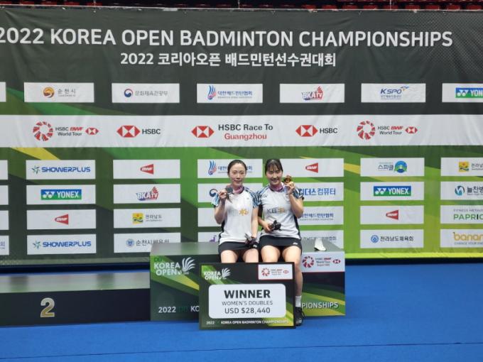 ȼø±ºÃ» ¼Ò¼Ó Á¤³ªÀº ¼±¼ö°¡ 2022 ÄÚ¸®¾Æ¿ÀÇ ¹èµå¹ÎÅϼ±¼ö±Ç ´ëȸ¿¡¼ ±èÇý°æ ¼±¼ö¿Í ¦À» ÀÌ·é ¿©ÀÚº¹½Ä¿¡¼´Â 1À§, ±è¿øÈ£ ¼±¼ö¿Í ¦À» ÀÌ·é È¥ÇÕº¹½Ä¿¡¼´Â 3À§ÀÇ ¿ì¼öÇÑ ¼ºÀûÀ» °Åµ×´Ù. »çÁøÀº Á¤³ªÀº(¿À¸¥ÂÊ), ±èÇý°æ(¿ÞÂÊ) ¼±¼ö°¡ ¿©ÀÚº¹½Ä ¿ì½ÂÀ» Â÷ÁöÇÑ ÈÄ ±â³äÃÔ¿µ ÇÏ´Â ¸ð½À