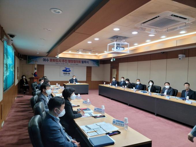 ¡®¿©¼ö ¹®Èµµ½Ã ÃßÁø ÇàÁ¤ÇùÀÇȸ(ÀÌÇÏ ÇàÁ¤ÇùÀÇȸ)¡¯´Â ºÎ½ÃÀåÀ» ´ÜÀåÀ¸·Î, ºÎ´ÜÀå(°ü±¤¹®È±³À°±¹Àå)°ú µµ½ÃÀÇ ¹®È¸¦ Ã¥ÀÓÁö´Â 17°³ ÇÙ½É ºÎ¼ÀåÀ¸·Î ±¸¼ºµÆ´Ù. ÇàÁ¤ÇùÀÇȸ´Â ¾ÕÀ¸·Î ¿©¼ö½ÃÀÇ ¹®Èµµ½Ã ÁöÁ¤À» À§ÇØ ºÎ¼º° ½Ç¹«ÇùÀÇȸ¿Í °øÀ¯Å×À̺íÀ» ¿î¿µÇØ ±¸Ã¼ÀûÀÎ ¼º°ú¸¦ âÃâÇÒ ¼ö ÀÖµµ·Ï ³ë·ÂÇÑ´Ù´Â °èȹÀÌ´Ù.
