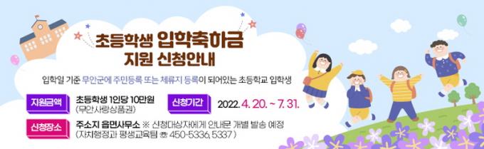 [È£³²´º½º¶óÀÎ = ¼ÀºÈ« ±âÀÚ] ¹«¾È±ºÀÌ ¿À´Â 4¿ù 20ÀϺÎÅÍ ÃʵîÇб³¿¡ ÀÔÇÐÇÏ´Â ¾Æµ¿ÀÌ ÀÖ´Â °¡Á¤ÀÇ ±³À°ºñ ºÎ´ãÀ» ´ú¾îÁÖ°í ¾ÆÀ̵éÀÇ ÀÔÇÐÀ» ÃàÇÏÇϱâ À§ÇØ Áö¿øÇÏ´Â ÃʵîÇлý ÀÔÇÐÃàÇÏ±Ý ½ÅûÀ» Á¢¼öÇÑ´Ù°í ¹àÇû´Ù.