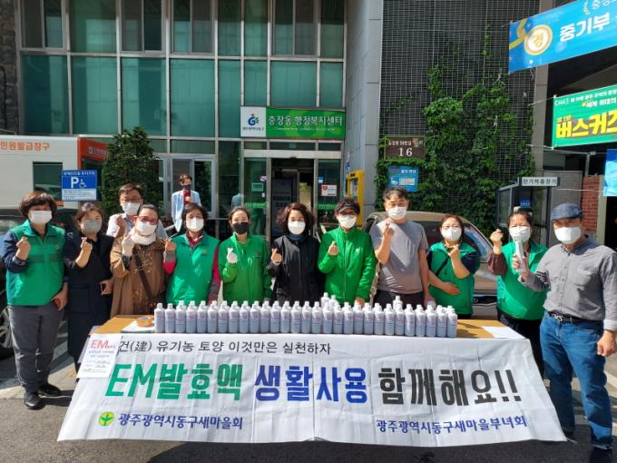 [È£³²´º½º¶óÀÎ = ¼ÀºÈ« ±âÀÚ] ±¤Áֽà µ¿±¸ ÃæÀ嵿 »õ¸¶À»ºÎ³àȸ(ȸÀå À̱ݼ÷)´Â Áö³ 20ÀÏ °ü³» ÁÖ¹ÎÀ» ´ë»óÀ¸·Î ģȯ°æ ¼¼Á¦(EM) ¹«·á ³ª´® Çà»ç¸¦ ÁøÇàÇß´Ù°í ¹àÇû´Ù.
