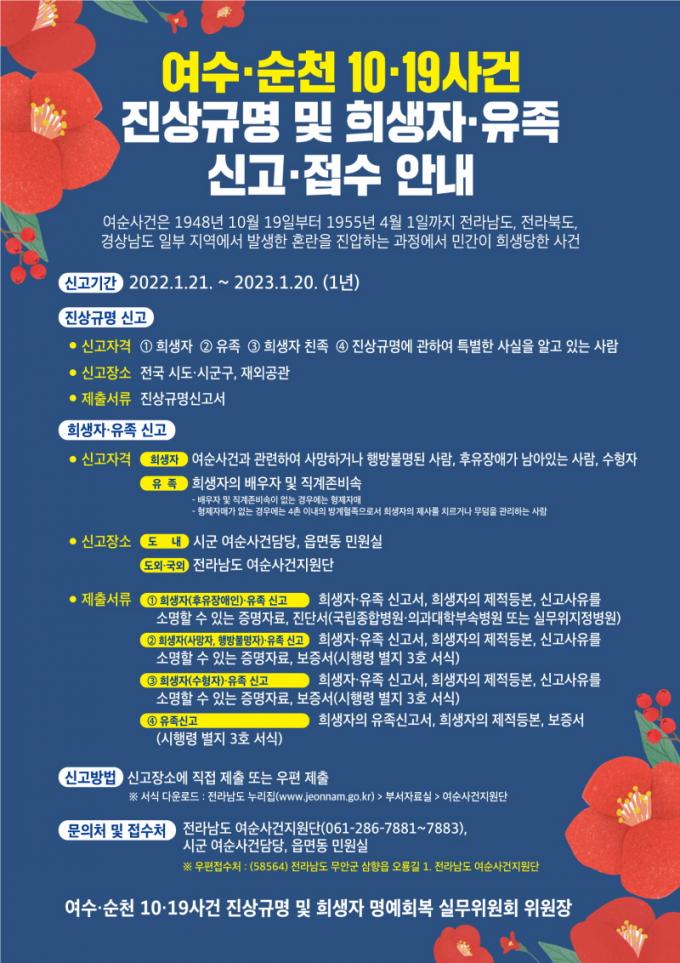 [È£³²´º½º¶óÀÎ = ¼ÀºÈ« ±âÀÚ] ³ªÁֽô ¿©¼ø»ç°Ç Áø»ó±Ô¸íÀ» À§ÇÑ ³ªÁÖÁö¿ª Èñ»ýÀÚ À¯Á· ½Å°í¸¦ ³»³â 1¿ù 20ÀϱîÁö Á¢¼öÇÑ´Ù°í 29ÀÏ ¹àÇû´Ù.