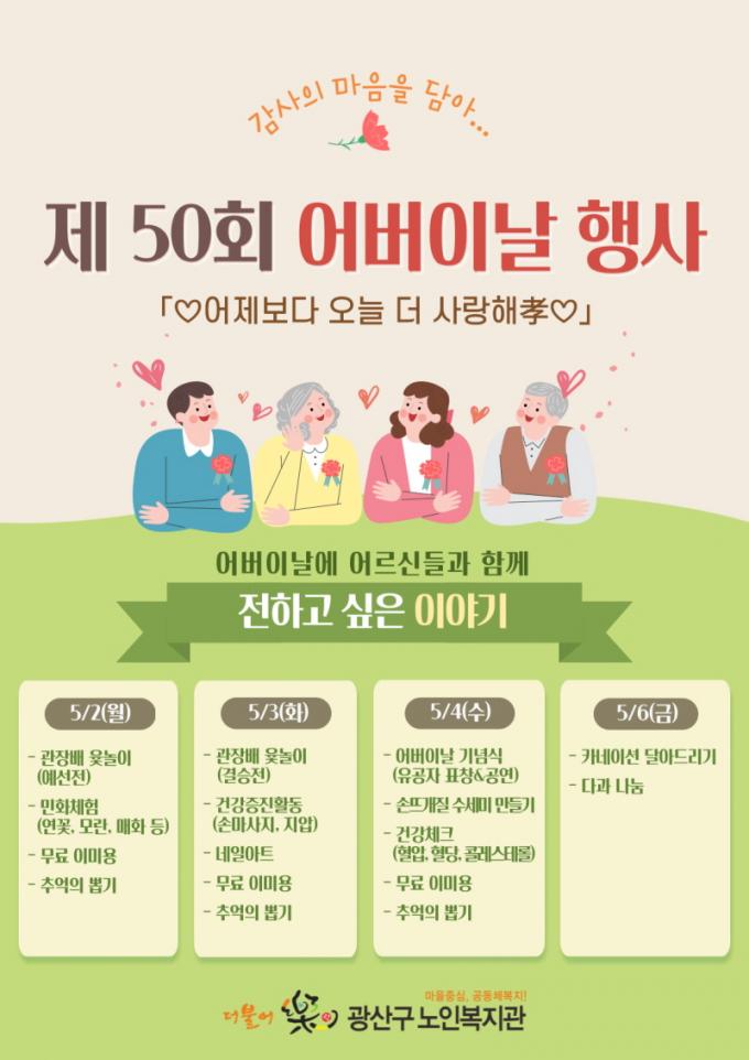 [È£³²´º½º¶óÀÎ = ¼ÀºÈ« ±âÀÚ] Á¦50ȸ ¾î¹öÀ̳¯À» ¸ÂÀÌÇÏ¿© ±¤»ê±¸ ³ëÀκ¹Áö°ü(´õºÒ¾î¶ô, Çູ³ª·ç ³ëÀκ¹Áö°ü)ÀÌ 5¿ù ù° ÁÖ °æ·Îȿģ ÁÖ°£ ±â³äÇà»ç¸¦ °³ÃÖÇÑ´Ù.