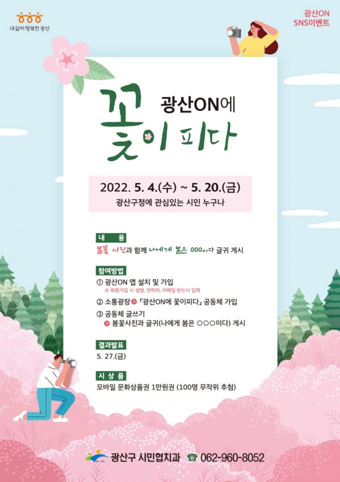 [È£³²´º½º¶óÀÎ = ¼ÀºÈ« ±âÀÚ] ±¤Áֽà ±¤»ê±¸°¡ 4ÀϺÎÅÍ 20ÀϱîÁö ¡®±¤»êON¿¡ ²ÉÀÌ ÇÇ´Ù¡¯ »çȸÀû°ü°è¸Á³×Æ®¿öÅ© ¼ºñ½º(SNS) À̺¥Æ®¸¦ °³ÃÖÇÑ´Ù.