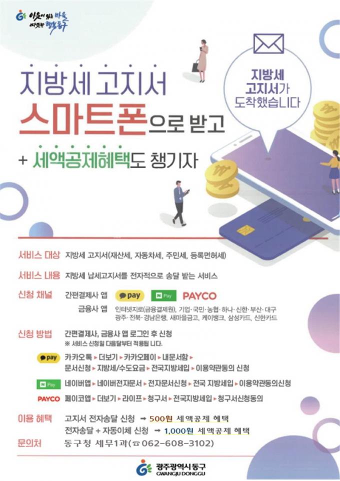 [È£³²´º½º¶óÀÎ = ¼ÀºÈ« ±âÀÚ] ±¤ÁÖ µ¿±¸´Â ÁֹεéÀÇ Áö¹æ¼¼ ³³ºÎ ÆíÀǸ¦ ³ôÀÌ°í ¼¼¾×°øÁ¦ ÇýÅÃÀ» ´Ã¸®´Â ¡®°íÁö¼ ÀüÀÚ¼Û´Þ ¼ºñ½º¡¯¸¦ 5¿ùºÎÅÍ È®´ë ½ÃÇàÇÑ´Ù°í ¹àÇû´Ù.