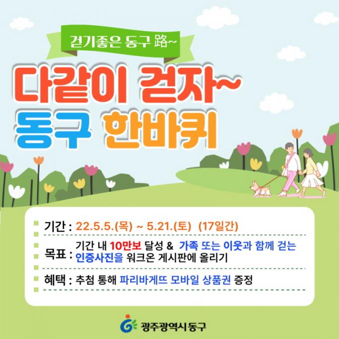 À̹ø À̺¥Æ®´Â ¸ð¹ÙÀÏ °È±â¾Û ¡®¿öÅ©¿Â¡¯À» Ȱ¿ëÇÑ 10¸¸ º¸ °È±â 縰Áö·Î °¡Á· ¶Ç´Â ÀÌ¿ô°ú ÇÔ²² °ÉÀ½À¸·Î½á °Ç°ÇÑ Áö¿ª»çȸ ºÐÀ§±â¸¦ Á¶¼ºÇϰíÀÚ ¸¶·ÃÇß´Ù. Âü¿© ¹æ¹ýÀº ½º¸¶Æ®Æù¿¡ ¸ð¹ÙÀÏ °È±â¾Û ¡®¿öÅ©¿Â¡¯À» ¼³Ä¡ÇÏ°í ¡®±¤ÁÖ µ¿±¸ ÁÖ¹ÎÄ¿¹Â´ÏƼ¡¯¿¡ °¡ÀÔ ÈÄ Ã§¸°Áö ÅÇ¿¡¼ ¡®´Ù °°ÀÌ °ÈÀÚ~µ¿±¸ ÇÑ ¹ÙÄû¡¯ Âü¿©Çϱ⸦ ´©¸£¸é µÈ´Ù.