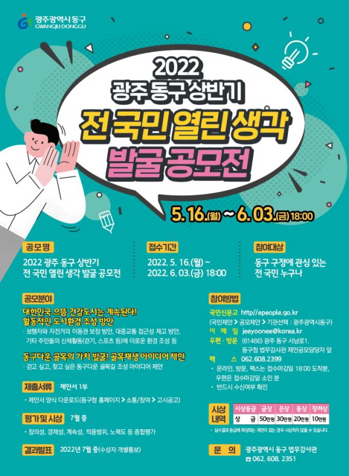 [È£³²´º½º¶óÀÎ = ¼ÀºÈ« ±âÀÚ] ±¤ÁÖ µ¿±¸´Â 16ÀϺÎÅÍ 6¿ù 3ÀϱîÁö ¡®2022 »ó¹Ý±â Àü ±¹¹Î ¿¸° »ý°¢ ¹ß±¼ °ø¸ðÀü¡¯À» ½Ç½ÃÇÑ´Ù°í ¹àÇû´Ù.