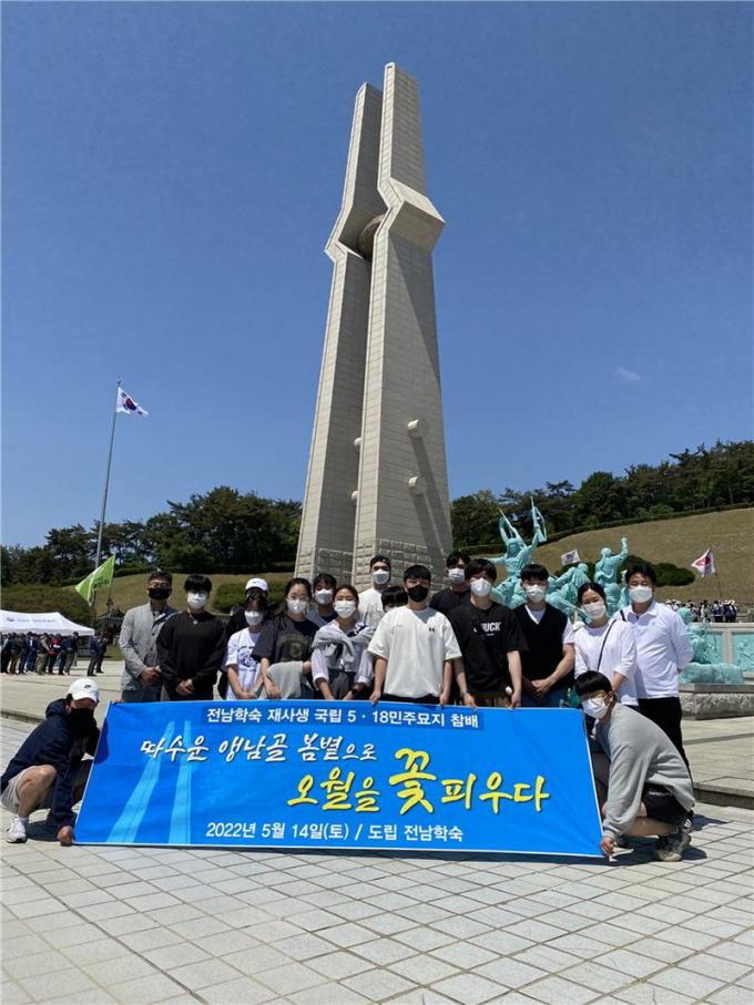 [È£³²´º½º¶óÀÎ = ¼ÀºÈ« ±âÀÚ] µµ¸³ Àü³²Çм÷(°üÀå ±è¼®¿ø) ´ëÇлý°ú Á÷¿øÀÌ 5․18¹ÎÁÖȿ 42Áֳ⠱â³äÀÏÀ» ¸Â¾Æ Áö³ 14ÀÏ ±¹¸³5․18¹ÎÁÖ¹¦Áö Âü¹è¿Í ȯ°æÁ¤È ºÀ»çȰµ¿À» ÆîÃÆ´Ù.