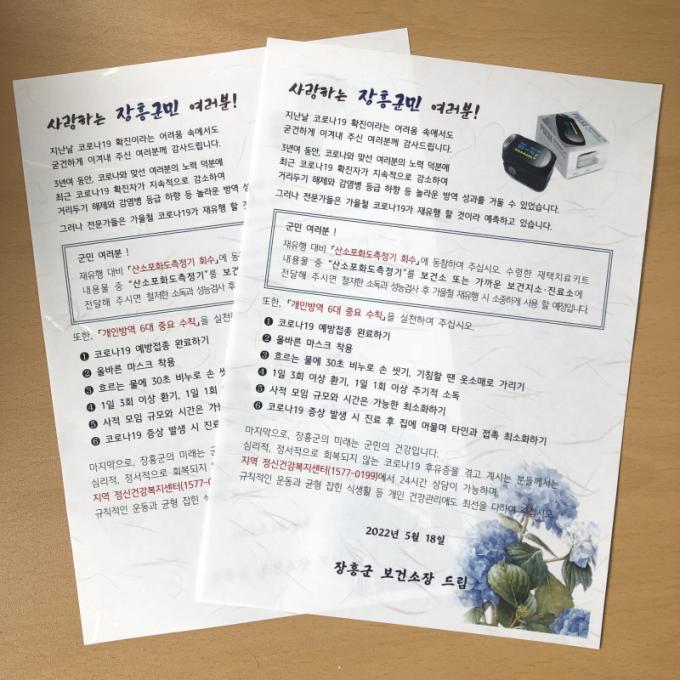 [È£³²´º½º¶óÀÎ = ¼ÀºÈ« ±âÀÚ] ÀåÈﱺÀº »ê¼ÒÆ÷ȵµ ÃøÁ¤±â¸¦ ¹ÞÀº ÀçÅÃÄ¡·á ÇØÁ¦ÀÚ 1,800¿© ¸í¿¡°Ô ¡®»ê¼ÒÆ÷ȵµ ÃøÁ¤±â ȸ¼ö ÇùÁ¶ ¼Çѹ®¡¯À» ¹ß¼ÛÇß´Ù°í 19ÀÏ ¹àÇû´Ù.