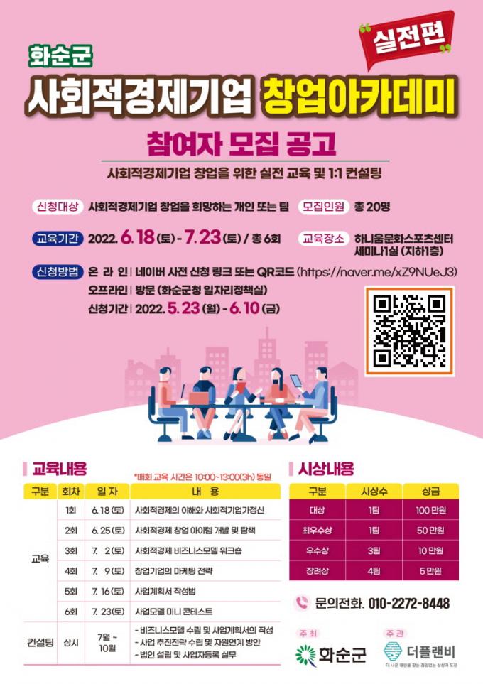 ¸ðÁý ±â°£Àº 5¿ù 23ÀϺÎÅÍ 6¿ù 10ÀϱîÁö´Ù. »çȸÀû°æÁ¦±â¾÷ â¾÷À» Èñ¸ÁÇϴ ȼø ±º¹ÎÀÌ¸é ´©±¸³ª ½ÅûÇÒ ¼ö ÀÖ´Ù. ½ÅûÀº ȼø±ºÃ» ´©¸®Áý(www.hwasun.go.kr) <°í½Ã°ø°í>¸¦ ÂüÁ¶ÇØ ¿Â¶óÀÎ(https://naver.me/xZ9NUeJ3)À¸·Î Çϰųª ÀÏÀÚ¸®Á¤Ã¥½ÇÀ» ¹æ¹®ÇØ ÇÏ¸é µÈ´Ù.