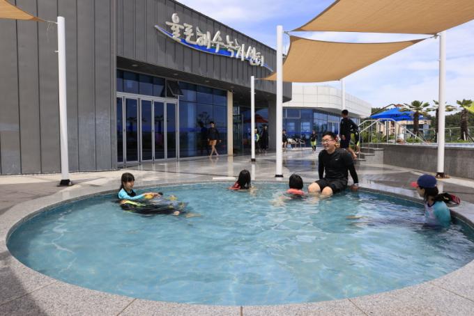 ÇÑÆí, À²Æ÷¼Ö¹çÇØ¼ö¿åÀåÀ» ¹Ù¶óº¸¸ç ÇØ¼ö ³ëõ¿åÀ» Áñ±æ ¼ö ÀÖ´Â ¡®À²Æ÷ÇØ¼ö³ìÂ÷¼¾ÅÍ¡¯´Â ÁöÇÏ 120m ¾Ï¹ÝÃþ¿¡¼ ²ø¾î¿Ã¸° ÇØ¼ö¿Í º¸¼º³ìÂ÷¸¦ ÀÌ¿ëÇÑ Èú¸µ¼¾ÅÍ´Ù.