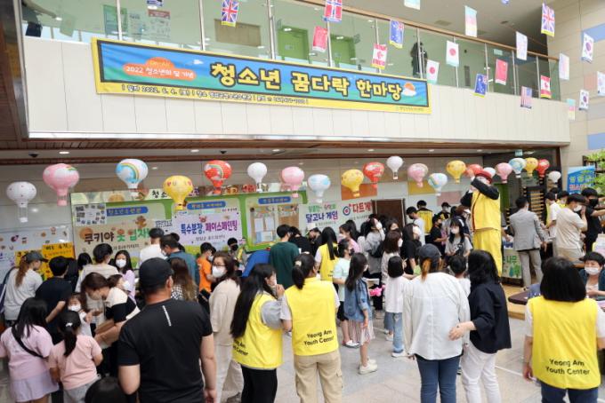 ¡®²ÞÀÌ ¸¹À¸¸é Áñ°Ì´Ù¡¯¶ó´Â ½½·Î°ÇÀ¸·Î ÁøÇàµÈ À̹ø ¡°Ã»¼Ò³â ²Þ´Ù¶ô ÇѸ¶´ç¡± Çà»ç´Â Äڷγª ÀÌÈÄ 3³â ¸¸¿¡ °³ÃֵǴ ¶æ±íÀº ÀÚ¸®·Î Äڷγª19·Î À§ÃàµÇ¾î Àִ û¼Ò³âµé¿¡°Ô ²Þ°ú Ȱ±â¸¦ ºÎ¿©ÇÏ°í ³îÀ̹®ÈÀÇ ÀåÀ» ¸¶·ÃÇØ ÁÖ°íÀÚ ÀÚÄ¡±â±¸ û¼Ò³âµéÀÌ ±âȹºÎÅÍ ÁøÇà±îÁö ¾ß½ÉÂ÷°Ô ÁغñÇÑ Çà»ç·Î ´«±æÀÇ ²ø¾ú´Ù.