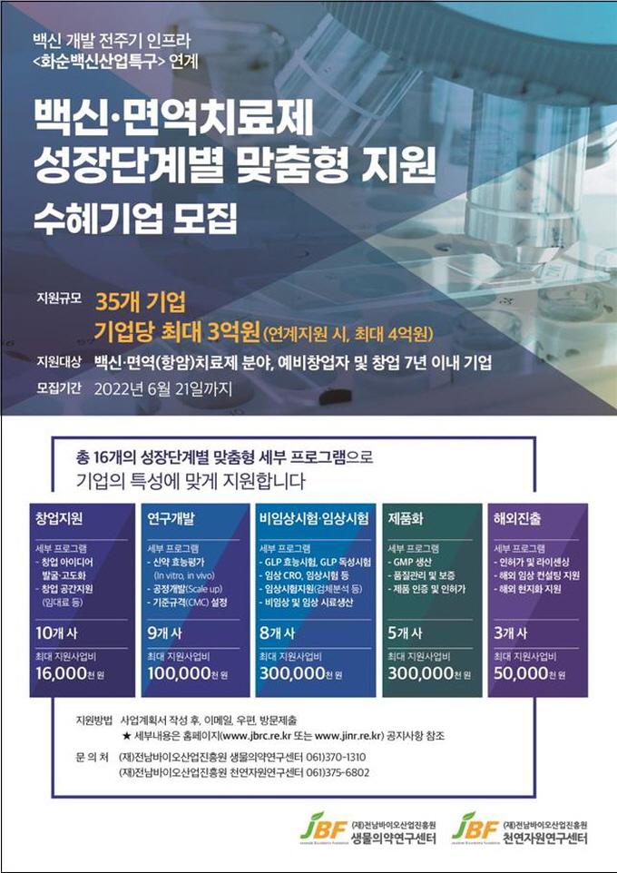 [È£³²´º½º¶óÀÎ = ¼ÀºÈ« ±âÀÚ] (Àç)Àü³²¹ÙÀÌ¿À»ê¾÷ÁøÈï¿ø »ý¹°ÀǾ࿬±¸¼¾Åʹ ȼø¹é½Å»ê¾÷Ư±¸ ÀÎÇÁ¶ó¸¦ ¿¬°èÇÑ ¹é½Å ¹× ¸é¿ªÄ¡·áÁ¦ ºÐ¾ß ¼ºÀå´Ü°èº° ¸ÂÃãÇü Áö¿ø»ç¾÷À» ¿À´Â 21ÀϱîÁö ¸ðÁýÇÑ´Ù°í ¹àÇû´Ù.