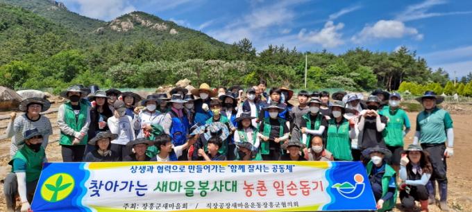 [È£³²´º½º¶óÀÎ = ¼ÀºÈ« ±âÀÚ] ÀåÈﱺ»õ¸¶À»È¸(ȸÀå ±èÀÏÁø)¿Í Á÷À塤°øÀå»õ¸¶À»¿îµ¿ÀåÈﱺÇùÀÇȸ(ȸÀå ±èÁ¤¿ø)´Â ÁÖ¸»À» ÀÌ¿ëÇÏ¿© »õ¸¶À»È¸¿ø°ú ȸ¿ø°¡Á· 50¿©¸í°ú ÇÔ²² ÀÏ¼Õ ºÎÁ·À¸·Î ¼öÈ®ÀÇ ¾î·Á¿òÀ» °Þ°í ÀÖ´Â Áö¿ª ³ó°¡¸¦ ã¾Æ ³óÃÌÀϼյ½±â ºÀ»çȰµ¿À» ½Ç½ÃÇÏ¿´´Ù.
