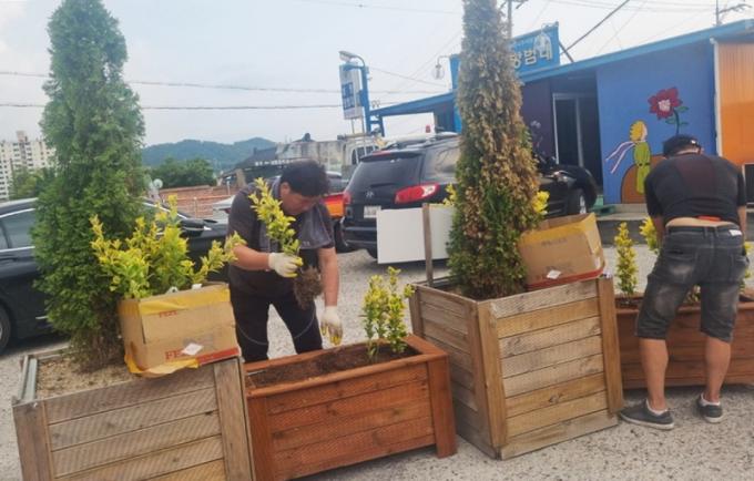 »ç¾÷ 2³âÂ÷¸¦ ¸ÂÀº ³²Æò¸¶À» ÁֹεéÀº ²É¹ç¡¤½°ÅÍ Á¶¼º, ¸¶À» ¹®ÆÐ Á¦ÀÛ µî ¾Æ¸§´ä°í Á¤ÀÌ ³ÑÄ¡´Â ¸¶À» °ø°£À» ¿¬ÃâÇÒ °èȹÀÌ´Ù. ½Å±Ô »ç¾÷ ´ë»óÁö·Î ¼±Á¤µÈ Â÷»ê¸¶À»Àº ÃÖ±Ù ÁֹΠ30¿©¸íÀÌ Âü¿©ÇØ º¸¶ùºû Â÷»ê ¸¶À» Ư»ö¿¡ ¸Â´Â ¡®º¸¶ùºû ¹®ÆÐ¡¯¸¦ Á¦ÀÛÇØ ´«±æÀ» ²ø¾ú´Ù. ÀÌ¿Ü ¸¶À»µéµµ À̹ø ´Þ ³»·Î ¸¶À»º° °³¼ºÀ» »ì¸° ²É¹ç ½°ÅÍ, ¹®ÆÐ, ¿ìüÅë ¸¸µé±â µîÀ» ¸¶¹«¸®ÇÒ °èȹÀÌ´Ù.