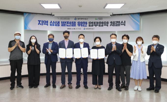 [È£³²´º½º¶óÀÎ = ¼ÀºÈ« ±âÀÚ] ±¤ÁÖ µ¿±¸(ûÀå ÀÓÅÃ)´Â Áö³ 30ÀÏ µ¿¸íµ¿ »ó±Ç Ȱ¼ºÈ ¹× »ó»ý¹ßÀüÀ» À§ÇØ ±¹¸³¾Æ½Ã¾Æ¹®ÈÀü´çÀç´Ü(»çÀå ±è¼±¿Á), µ¿¸í°øµ¿Ã¼»ó»ýÇùÀÇȸ(ȸÀå³²º´È¿)¿Í ±â°£ ¿¬ÀåÀ» À§ÇÑ Áö¿ª»ó»ý ¾÷¹«Çù¾àÀ» ü°áÇß´Ù°í ¹àÇû´Ù.