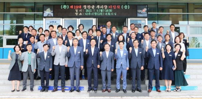 [È£³²´º½º¶óÀÎ = ¼ÀºÈ« ±âÀÚ] Á¤Âù±Õ ³ªÁֺνÃÀåÀÌ 7¿ù 5ÀÏÀÚ Àü¶ó³²µµ Àλç¹ß·É¿¡ µû¶ó °íÇâ¿¡¼ ¸ö´ã¾Ò´ø 1³â 6°³¿ùÀÇ ºÎ½ÃÀå Àӱ⸦ ¸¶ÃÆ´Ù. ³ªÁÖ½Ã(½ÃÀå À±º´ÅÂ)´Â 3ÀÏ Ã»»ç ´ëȸÀǽǿ¡¼ Á¦19´ë Á¤Âù±Õ ºÎ½ÃÀå ÀÌÀÓ½ÄÀ» °³ÃÖÇß´Ù°í ¹àÇû´Ù.