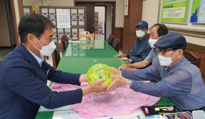 º¸¼º±º, 1±Þ Àå¾Ö µ¿»ýÀÌ ³²±ä Àú±ÝÅë ¾î·Á¿î ÀÌ¿ô¿¡°Ô ¿À¸¥ÂÊ À̸¸Ã¤´Ô²²¼ ¿ÞÂÊ ¼±³²±Ô ¹ú±³À¾Àå¿¡°Ô Àú±ÝÅëÀ» Àü´ÞÇϰí ÀÖ´Ù