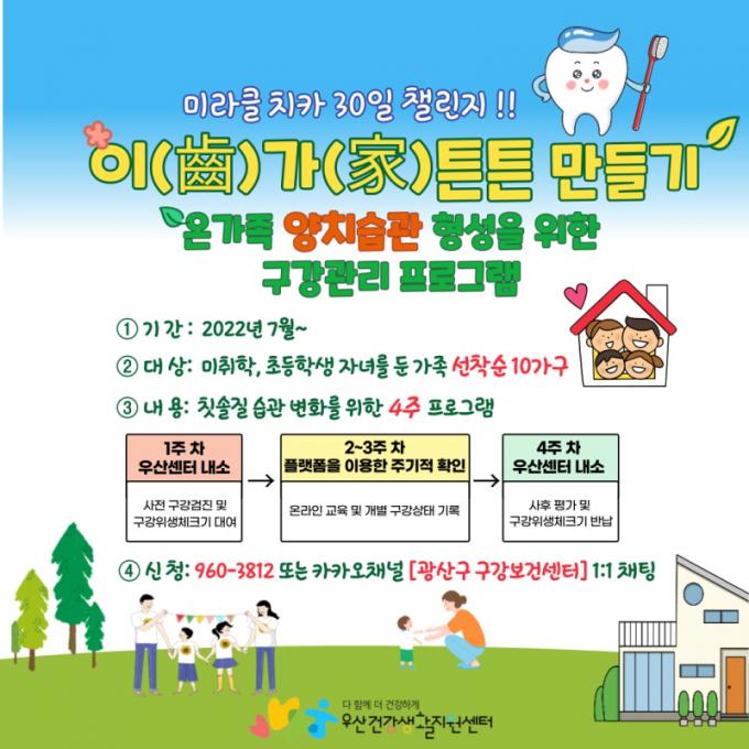 Âü¿©¸¦ Èñ¸ÁÇÏ´Â °¡Á·Àº ±¤»ê±¸ ¿ì»ê°Ç°»ýȰÁö¿ø¼¾ÅÍ ±¸°º¸°ÇÆÀ(062-960-3812)¿¡ ¹®ÀÇÇÏ¸é µÈ´Ù.