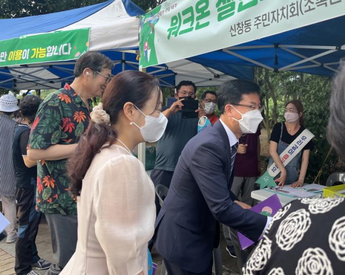 Áö³ 11ÀÏ ½Å⵿ ÀÚ¿ø¼øÈ¯ ¹°¹°±³È¯ ÀåÅ͸¦ ãÀº ¹Úº´±Ô ±¤»ê±¸Ã»ÀåÀÌ ½Ã¹Îµé°ú Àλ縦 ³ª´©°í ÀÖ´Ù.