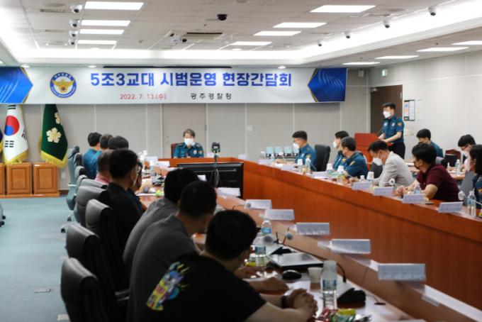 [È£³²´º½º¶óÀÎ = ¼ÀºÈ« ±âÀÚ] ±¤ÁÖ±¤¿ª½Ã°æÂûû(ûÀå ÀÓ¿ëȯ)Àº Áö³ 13ÀÏ ±¤ÁÖ°æÂûû ¹«µîȦ¿¡¼ »ó¹«Áö±¸´ë, ¼ö¿ÏÁö±¸´ë ÇöÀåÁ÷¿ø µî 30¿©¸íÀÌ Âü¼®ÇÑ °¡¿îµ¥ 5Á¶3±³´ë ÇöÀå°£´ãȸ¸¦ °³ÃÖÇÏ¿´´Ù.