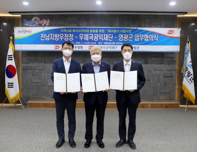 À̳¯ Çù¾à½Ä¿¡ Âü¼®ÇÑ ¼Û°üÈ£ Àü³²Áö¹æ¿ìÁ¤Ã»Àå°ú ¹ÚÁ¾¼® ¿ìü±¹°øÀÍÀç´Ü ÀÌ»çÀåÀº ¡°¿µ±¤±º°úÀÇ Àû±ØÀû Çù·ÂÀ» ÅëÇØ ¿ìÁ¤ ³×Æ®¿öÅ©¸¦ Ȱ¿ëÇÑ »çȸ¾ÈÀü¸Á ¿ªÇÒÀ» °ÈÇØ ³ª°¡°Ú´Ù¡±¸ç,¡°¼º°øÀûÀÎ ¿î¿µÀÌ µÉ ¼ö ÀÖµµ·Ï ½Ã¹ü»ç¾÷ Áö¿ø¿¡ ÃÖ¼±À» ´ÙÇϰڴ١±°í ¹àÇû´Ù.