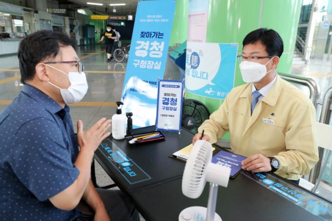 [È£³²´º½º¶óÀÎ = ¼ÀºÈ« ±âÀÚ] ¹Úº´±Ô ±¤»ê±¸Ã»ÀåÀÌ 14ÀÏ ¿ÀÈÄ ¡®±¸Ã»À塯ÀÌ ¾Æ´Ñ ¡®°æÃ»À塯À¸·Î¼ ½Ã¹ÎµéÀ» ¸¸³ª ´Ù¾çÇÑ ¸ñ¼Ò¸®¿Í À̾߱⸦ ûÃëÇß´Ù. ¹Î¼±8±â 1È£ °áÀç ¡®Ã£¾Æ°¡´Â °æÃ» ±¸Ã»Àå½Ç¡¯À» óÀ½À¸·Î ¿¬ °ÍÀÌ´Ù.
