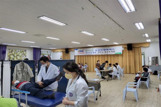 À̳¯ Çà»ç¿¡´Â ¿ø±¤´ëÇб³ ÀåÈïÅëÇÕÀǷẴ¿ø(º´¿øÀå ÀÌÁ¤ÇÑ) ÀÇ·áÁøÀÌ Âü¿©ÇØ Ã´Ãß¡¤°üÀýÁúȯ °Ç°»ó´ã°ú ħ, ¶ä, ºÎȲ, ¹°¸®Ä¡·á µî ¹«·á ÇѹæÁø·á¸¦ ½Ç½ÃÇß´Ù. ¶ÇÇÑ ¾î¸£½ÅµéÀÇ ¹«º´Àå¼ö¸¦ ±â¿øÇÏ´Â ¶æ¿¡¼ Àå¼ö»çÁøÀ» ÃÔ¿µÇÏ°í ¾×ÀÚ»çÁøÀ» Á¦°øÇÏ¿´À¸¸ç, °³Àκ° °Ë¾È ÈÄ ¸ÂÃãÇü µ¸º¸±â¸¦ Á¦°øÇÏ¿´´Ù.