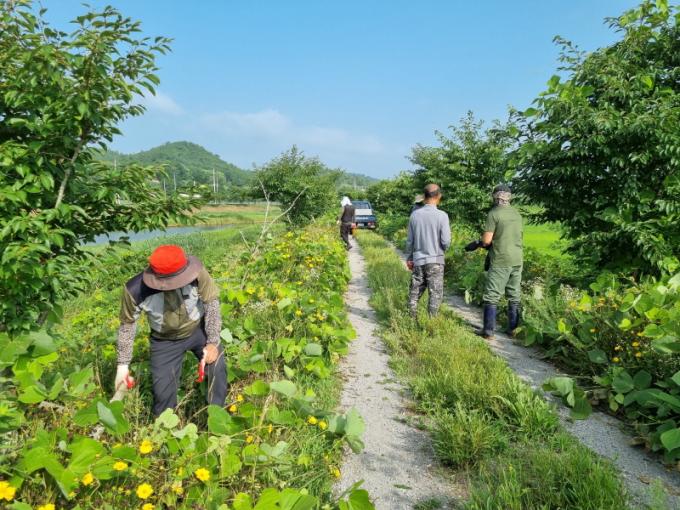 Áö³ 15Àϰú 16ÀÏ, À嵿¸é°ú ÀåÆò¸éÀº ¹ø¿µÈ¸ ¹× û³âȸ µî »çȸ´Üü¿Í Çù¾÷À» ÅëÇØ ¾ç Áö¿ªÀ» °¡·ÎÁö¸£´Â º¸¼º° Á¦¹æ Ħ³ÕÄð ¹× ÁöÁÖ´ë Á¦°Å ÀÛ¾÷À» ½Ç½ÃÇß´Ù. ÀÛ¾÷ ±¸°£Àº ÁֹεéÀÇ »êÃ¥·Î·Î »ç¿ëµÇ°í ÀÖ´Â ¾à 2km ¶Ò¹æ±æ·Î, Ħ³ÕÄðÀÌ ¿ôÀÚ¶ó º¢³ª¹«ÀÇ ¼ºÀåÀ» ÀúÇØÇÏ°í ¹Ì°üÀ» ÈѼÕÇϰí ÀÖ´Â °÷ÀÌ´Ù.