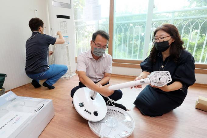 ¼ÛÁ¤2µ¿(µ¿Àå ¿ÀÁ¾±³)Àº Áö³ 26ÀÏ °ü³» °æ·Î´ç 9°³¼Ò¸¦ ¹æ¹®ÇÏ¿© ¼±Ç³±â µî ³Ã¹æ¿ëǰÀ» Àü´ÞÇÏ°í ¾ÈºÎ¸¦ È®ÀÎÇÏ¸ç ¾Ö·Î»çÇ×À» ûÃëÇÏ´Â ¼ÒÅëÀÇ ½Ã°£À» °¡Á³´Ù. ¼ÛÁ¤2µ¿Àº À̳¯ ³Ã¹æ±â µî °¢ °æ·Î´çÀÇ ½Ã¼³¹°À» ²Ä²ÄÈ÷ Á¡°ËÇϰí Äڷγª19 ÀçÈ®»ê¿¡ ´ëºñÇØ ¸¶½ºÅ© Âø¿ë µî »ýȰ¹æ¿ª ¼öÄ¢µµ ¾È³»Çß´Ù.