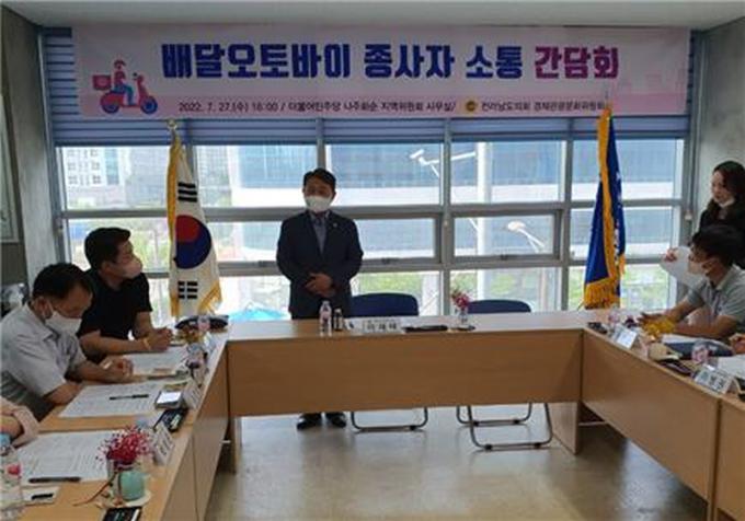 [È£³²´º½º¶óÀÎ = ¼ÀºÈ« ±âÀÚ] Àü¶ó³²µµÀÇȸ ÀÌÀçÅ ÀÇ¿ø(´õºÒ¾î¹ÎÁִ硤³ªÁÖ3)ÀÌ Áö³ 27ÀÏ ´õºÒ¾î¹ÎÁÖ´ç ³ªÁÖȼø Áö¿ªÀ§¿øÈ¸ ȸÀǽǿ¡¼ ¡®¹è´Þ ¿ÀÅä¹ÙÀÌ Á¾»çÀÚ ¼ÒÅë °£´ãȸ¡¯¸¦ ÁÖÀçÇØ µµ¹Î°ú ¹è´Þ¿ÀÅä¹ÙÀÌ Á¾»çÀÚÀÇ ¾ÈÀü´ëÃ¥À» ³íÀÇÇß´Ù.