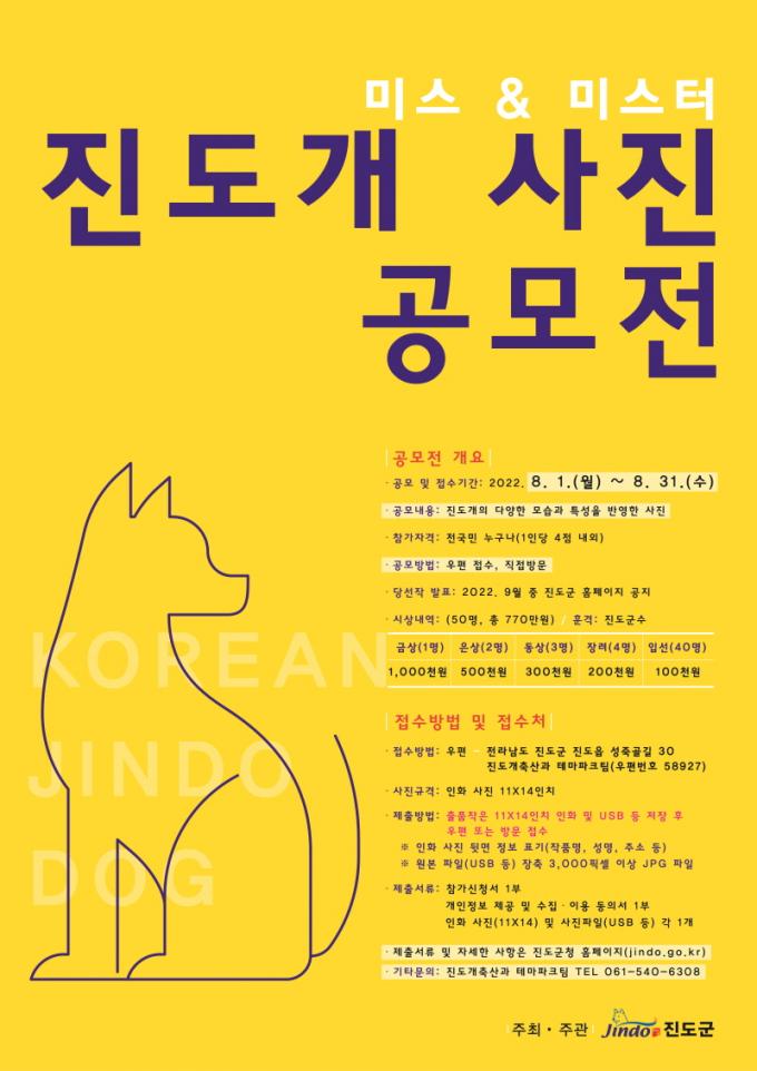 Áøµµ°³ÀÇ ´Ù¾çÇÑ ¸ð½À°ú Ư¼ºÀ» ¹Ý¿µÇϰí Áøµµ°³ÀÇ À̹ÌÁö¿Í ¿ì¼ö¼º µîÀ» È«º¸ÇÒ ¼ö ÀÖ´Â »çÁøÀ» ¿À´Â 8¿ù 31ÀÏ(¼ö)±îÁö Á¢¼ö ¹Þ´Â´Ù.