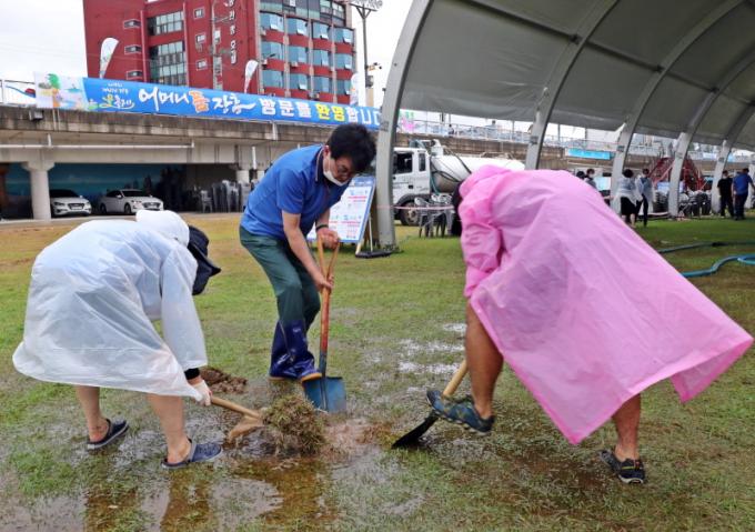 À̳¯ ¹°ÃàÁ¦Àå ȯ°æÁ¤ºñ¿¡´Â ±è¼º ÀåÈﱺ¼ö¸¦ ºñ·ÔÇÑ ÀåÈﱺ °ø¹«¿ø 100¿©¸íÀÌ Âü¼®Çß´Ù. Âü°¡ °ø¹«¿øµéÀº ¹ã»õ ³»¸° ºñ·Î ÃàÁ¦Àå °÷°÷¿¡ »ý±ä ¹°¿õµ¢À̸¦ Á¦°ÅÇϰí Èê·¯³»¸° Åä»ç¸¦ Á¤¸®Çß´Ù.