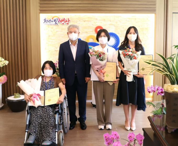[È£³²´º½º¶óÀÎ = ¼ÀºÈ« ±âÀÚ] ¿µ±¤±º(±º¼ö °Á¾¸¸)Àº Áö³ 2ÀÏ, 2022³â »ó¹Ý±â Ä£Àý°ø¹«¿øÀ¸·Î ¼±Á¤µÈ º¸°Ç¼Ò Àå°æ¼± ±º¼´ö»êº¸°ÇÁø·á¼ÒÀå, ¹®È°ü±¤°ú ¹Ú°æÈñ ÁÖ¹«°ü, ¿µ±¤À¾ ¹ÚÁöÇö ÁÖ¹«°ü 3¸íÀ» ǥâÇÏ°í °Ý·ÁÇÏ´Â ÀÚ¸®¸¦ °¡Á³´Ù.