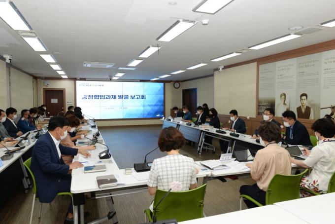 ±¤»ê±¸´Â 3ÀÏ ¿ÀÀü ±¸Ã» 2Ãþ »óȲ½Ç¿¡¼ ¡®¹Î¼±8±â ÁßÁ¡Çù¾÷°úÁ¦ ¹ß±¼ º¸°íȸ¡¯¸¦ °³ÃÖÇß´Ù. ¹Úº´±Ô ±¤»ê±¸Ã»ÀåÀÌ ÁÖÀçÇÑ À̳¯ º¸°íȸ¿¡´Â ±¤»ê±¸ 28°³ ½Ç‧°ú‧¼ÒÀåÀÌ Âü¼®ÇØ 14°³ ÁßÁ¡Çù¾÷°úÁ¦¿Í ÀÌ¿¡ ´ëÇÑ ±âº»¹æÇâ ¹× ÃßÁø°èȹÀ» °øÀ¯Çϰí, °úÁ¦º° Åä·ÐÀ» ÁøÇàÇß´Ù.