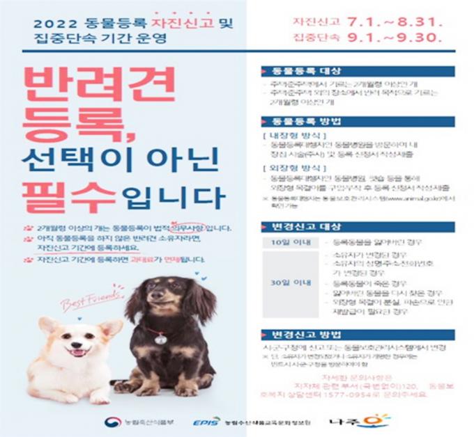 ÇÑÆí, ³ªÁֽô ÀÚÁø ½Å°í ±â°£ Á¾·á ÀÌÈÄÀÎ 9¿ù ÇÑ ´Þ °£ µ¿¹° ¹Ìµî·Ï ¹× º¯°æ»çÇ× ¹Ì ½Å°íÀÚ¿¡ ´ëÇÑ ÁýÁߴܼÓÀ» ½Ç½ÃÇÒ ¹æÄ§ÀÌ´Ù.³ªÁֽà °ü°èÀÚ´Â ¡°¹Ý·Áµ¿¹° µî·ÏÀº ¼±ÅÃÀÌ ¾Æ´Ñ Çʼö»çÇ×À¸·Î À̹ø ½Å°í ±â°£ ¿î¿µÀ» ÅëÇØ ¼ÒÀ¯ÀÚÀÇ Ã¥ÀÓÀÇ½Ä °íÃë µî ¼º¼÷ÇÑ ¹Ý·Áµ¿¹° ¹®È°¡ È®»êµÇ±æ ±â´ëÇÑ´Ù¡±°í ¹àÇû´Ù.