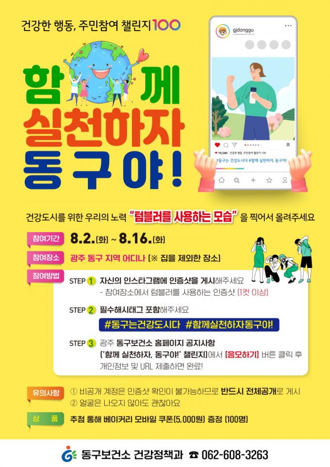 8¿ù¿¡ ÁøÇàµÇ´Â 縰Áö´Â °ÅÁÖÁö¸¦ Á¦¿ÜÇÑ µ¿±¸ °ü³» ¾îµð¼³ª ÅÒºí·¯¸¦ »ç¿ëÇÏ´Â ¸ð½ÀÀ» ÃÔ¿µÇØ °³ÀÎ SNS(ÀνºÅ¸±×·¥)¿¡ ÀÎÁõ¼¦À» °Ô½ÃÇÏ¸é µÈ´Ù. Âü¿© ±â°£Àº ¿À´Â 16ÀϱîÁö·Î Âü¿©ÀÚ Áß 100¸íÀ» ÃßÃ·ÇØ ¸ð¹ÙÀÏ »óǰ±Ç(5õ ¿ø)À» ÁõÁ¤ÇÑ´Ù. ±âŸ ÀÚ¼¼ÇÑ »çÇ×Àº °Ç°Á¤Ã¥°ú °Ç°µµ½Ã°è(¢Ï062-608-3263)·Î ¹®ÀÇ.