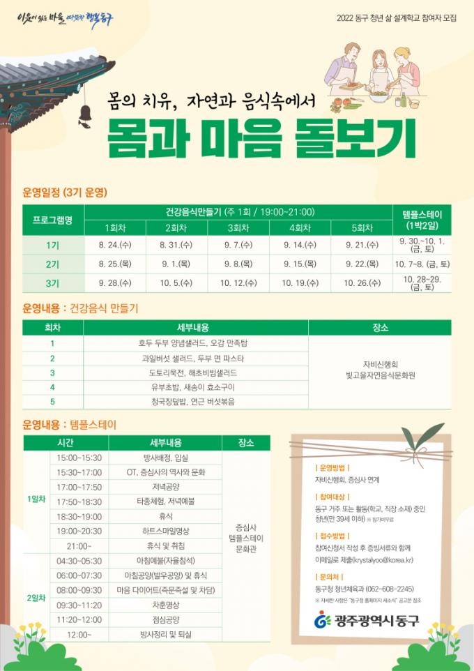 [È£³²´º½º¶óÀÎ = ¼ÀºÈ« ±âÀÚ] ±¤Áֽà µ¿±¸(ûÀå ÀÓÅÃ)´Â ¹Ýº¹µÇ´Â ÀÏ»ó¿¡ ÁöÄ£ û³âµé¿¡°Ô ÀÚ¿¬¿¡¼ Àá½Ã ½¬¸ç ÀÚ½ÅÀÇ ¸ö°ú ¸¶À½À» µé¿©´Ùº¼ ¼ö ÀÖ´Â ¡®Ã»³â »î ¼³°èÇб³- ¸ö°ú ¸¶À½ µ¹º¸±â¡¯ ÇÁ·Î±×·¥ Âü¿©ÀÚ¸¦ ¿À´Â 19ÀϱîÁö ¸ðÁýÇÑ´Ù°í ¹àÇû´Ù.
