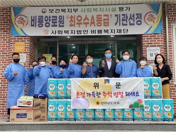 [È£³²´º½º¶óÀÎ = ¼ÀºÈ« ±âÀÚ] Àü¶ó³²µµÀÇȸ ¹Ú¿øÁ¾ ÀÇ¿ø(´õºÒ¾î¹ÎÁÖ´ç, ¿µ±¤1)ÀÌ 23ÀÏ ¹ÎÁ· ÃÖ´ë ¸íÀýÀÎ Ãß¼®À» ¾ÕµÎ°í ¿µ±¤±º ¼ÒÀç ³ëÀκ¹Áö½Ã¼³ÀÎ ¡®ºñ·æ¾ç·Î¿ø¡¯°ú ¡®¿µ±¤³ëÀÎÀü¹®¿ä¾ç¿ø¡¯À» ã¾Æ À§¹®Ç°À» Àü´ÞÇÏ°í °ü°èÀÚµéÀ» °Ý·ÁÇß´Ù.