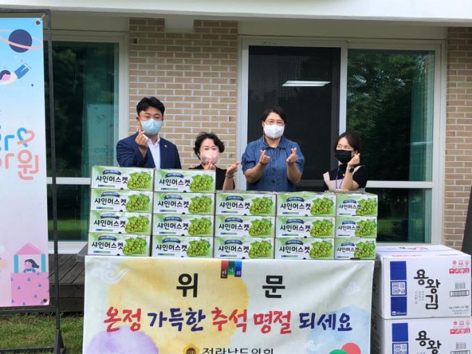 [È£³²´º½º¶óÀÎ = ¼ÀºÈ« ±âÀÚ] Àü¶ó³²µµÀÇȸ ±èÈ£Áø ÀÇ¿ø(´õºÒ¾î¹ÎÁÖ´ç, ³ªÁÖ1)ÀÌ 25ÀÏ Ãß¼®À» ¾ÕµÎ°í ³ªÁֽà ¼ÒÀç ¾Æµ¿º¹Áö½Ã¼³ÀÎ ÀÌÈ¿µ¾Æ¿øÀ» ¹æ¹®ÇØ À§¹®Ç°À» Àü´ÞÇÏ°í °ü°èÀÚµéÀ» °Ý·ÁÇß´Ù.