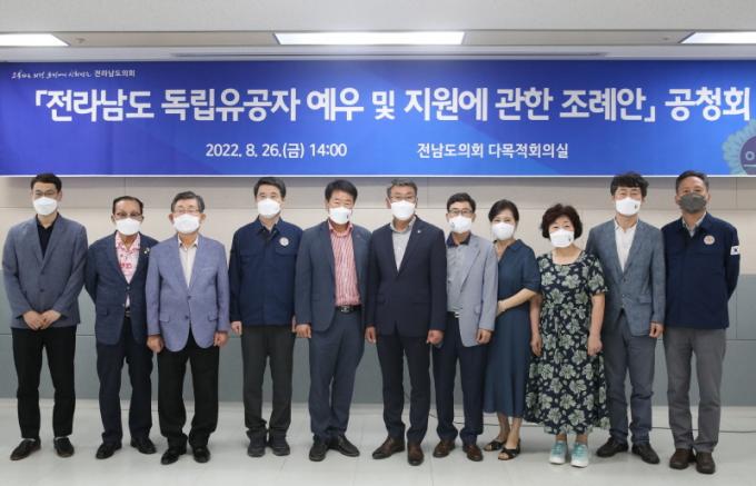 [È£³²´º½º¶óÀÎ = ¼ÀºÈ« ±âÀÚ] Àü³²µµÀÇȸ°¡ 26ÀÏ, µµÀÇȸ ´Ù¸ñÀûȸÀǽǿ¡¼ ¡®Àü¶ó³²µµ µ¶¸³À¯°øÀÚ ¿¹¿ì ¹× Áö¿ø Á¶·Ê¾È¡¯ °øÃ»È¸¸¦ °³ÃÖÇß´Ù.