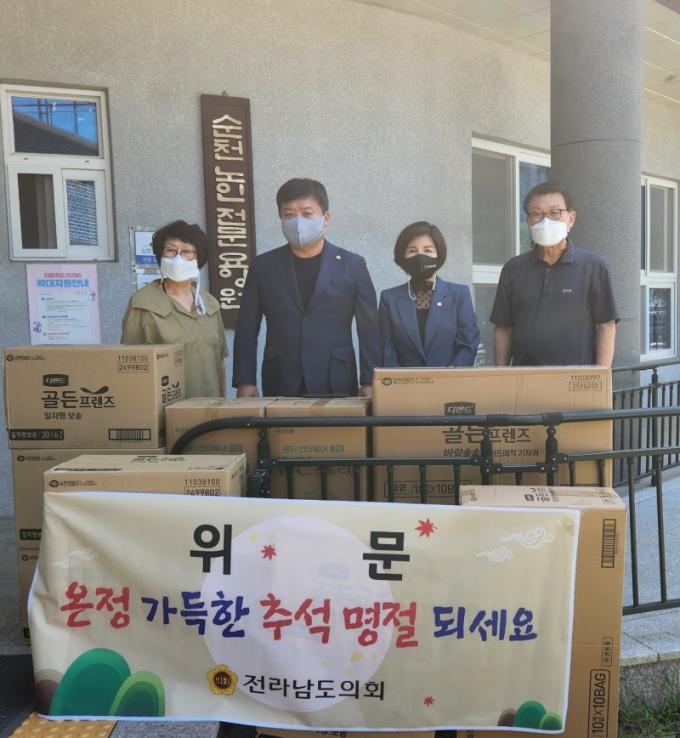 [È£³²´º½º¶óÀÎ = ¼ÀºÈ« ±âÀÚ] Àü¶ó³²µµÀÇȸ Á¤¿µ±Õ ÀÇ¿ø(´õºÒ¾î¹ÎÁÖ´ç, ¼øÃµ1)ÀÌ Áö³ 26ÀÏ Ãß¼®À» ¾ÕµÎ°í ¼øÃµ½Ã ¼ÒÀç ³ëÀοä¾ç½Ã¼³ÀÎ ¡®¼øÃµ³ëÀÎÀü¹®¿ä¾ç¿ø¡¯À» ¹æ¹®ÇØ À§¹®Ç°À» Àü´ÞÇÏ°í °ü°èÀÚµéÀ» °Ý·ÁÇß´Ù.