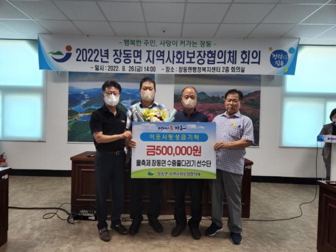 [È£³²´º½º¶óÀÎ = ¼ÀºÈ« ±âÀÚ] ÀåÈﱺ À嵿¸éÁö¿ª»çȸº¸ÀåÇùÀÇü´Â Á¦15ȸ Á¤³²Áø ÀåÈï ¹°ÃàÁ¦ ±â°£ À¾¸é´ëÇ× ¼öÁßÁٴٸ®±â ºÎ¹® ¿ì½ÂÆÀ À嵿¸é ¼öÁßÁٴٸ®±â ¼±¼ö´ÜÀÌ ¼º±Ý 50¸¸¿øÀ» ±âŹÇß´Ù°í ÀüÇß´Ù.