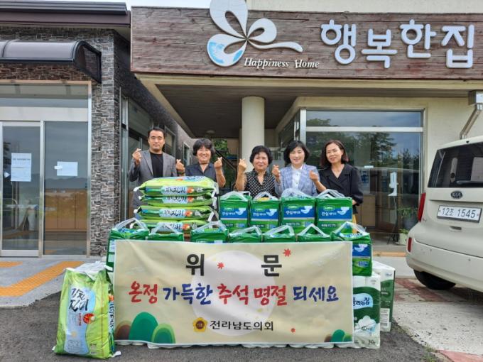 [È£³²´º½º¶óÀÎ = ¼ÀºÈ« ±âÀÚ] Àü¶ó³²µµÀÇȸ Àü¼Çö ÀÇ¿ø(±¹¹ÎÀÇÈû, ºñ·Ê)ÀÌ 29ÀÏ Ãß¼® ¸íÀýÀ» ¸Â¾Æ °Áø±º Ä¥·®¸é¿¡ À§Ä¡ÇÑ ¿ä¾ç½Ã¼³À» ¹æ¹®ÇÏ¿© À§¹®Ç°À» Àü´ÞÇÏ°í ½Ã¼³°ü°èÀÚµéÀ» °Ý·ÁÇß´Ù.