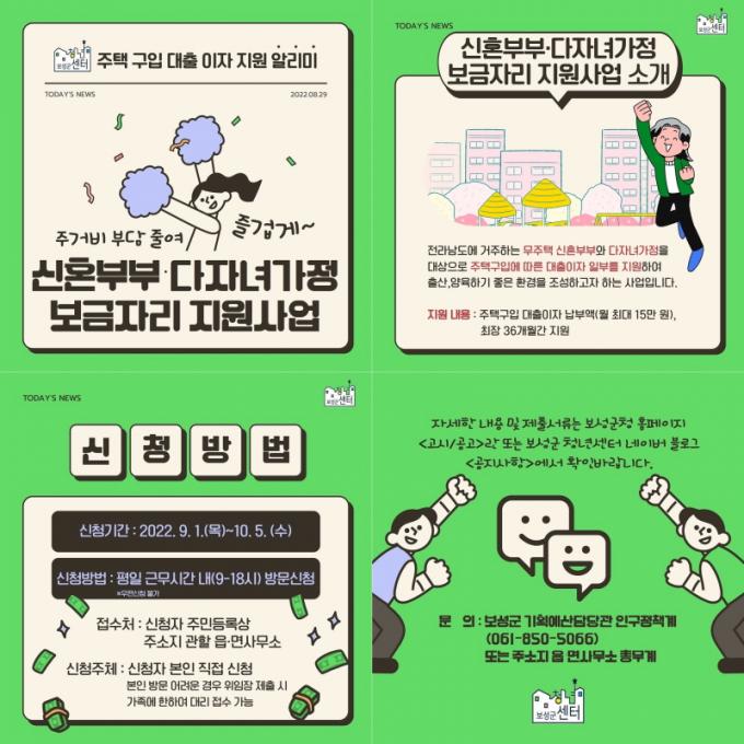 [È£³²´º½º¶óÀÎ = ¼ÀºÈ« ±âÀÚ] º¸¼º±ºÀº 9¿ù 1ÀϺÎÅÍ ½ÅÈ¥ºÎºÎ¿Í ´ÙÀڳడÁ¤ÀÇ Áְźñ ºÎ´ãÀ» ´ú¾îÁÖ±â À§ÇÑ ¡®½ÅÈ¥ºÎºÎ․´ÙÀڳడÁ¤ º¸±ÝÀÚ¸® Áö¿ø»ç¾÷¡¯ ´ë»óÀÚ¸¦ ¸ðÁýÇÑ´Ù°í ¹àÇû´Ù.