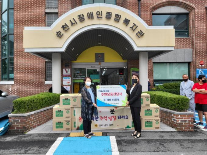 [È£³²´º½º¶óÀÎ = ¼ÀºÈ« ±âÀÚ] Àü³²µµÀÇȸ ÇѼ÷°æ ÀÇ¿ø(´õºÒ¾î¹ÎÁÖ´ç, ¼øÃµ7)Àº 2ÀÏ Ãß¼® ¸íÀýÀ» ¾ÕµÎ°í ¼øÃµ½Ã ¼¸é¿¡ À§Ä¡ÇÑ ¼øÃµÀå¾ÖÀÎÁ¾ÇÕº¹Áö°üÀ» ¹æ¹®ÇØ ½Ã¼³ Á¾»çÀÚµéÀ» À§·ÎÇϰí À§¹®Ç°À» Àü´ÞÇß´Ù.