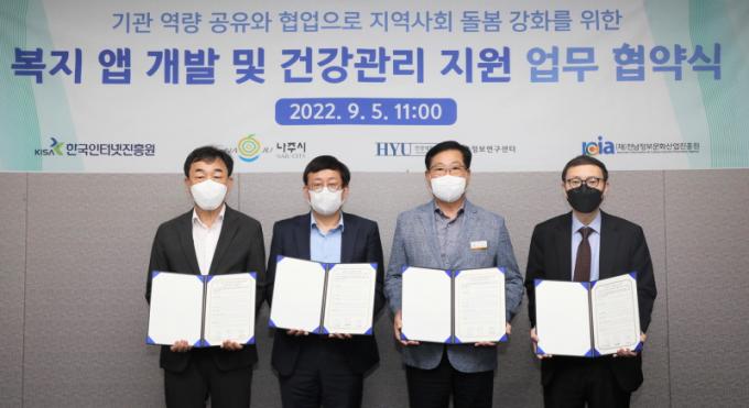 ³ªÁÖ½Ã(½ÃÀå À±º´ÅÂ)´Â 5ÀÏ Çѱ¹ÀÎÅͳÝÁøÈï¿ø(KISA), (Àç)Àü³²Á¤º¸¹®È»ê¾÷ÁøÈï¿ø, ÇѾç´ëÇб³ »ýÁ¸½ÅÈ£Á¤º¸¿¬±¸¼¾ÅÍ µî 4°³ ±â°ü°ú ¡®¸ÂÃãÇü º¹Áö ¾Û °³¹ß ¹× °Ç°°ü¸® Áö¿ø ¾÷¹«Çù¾à¡¯À» ü°áÇß´Ù°í ¹àÇû´Ù.